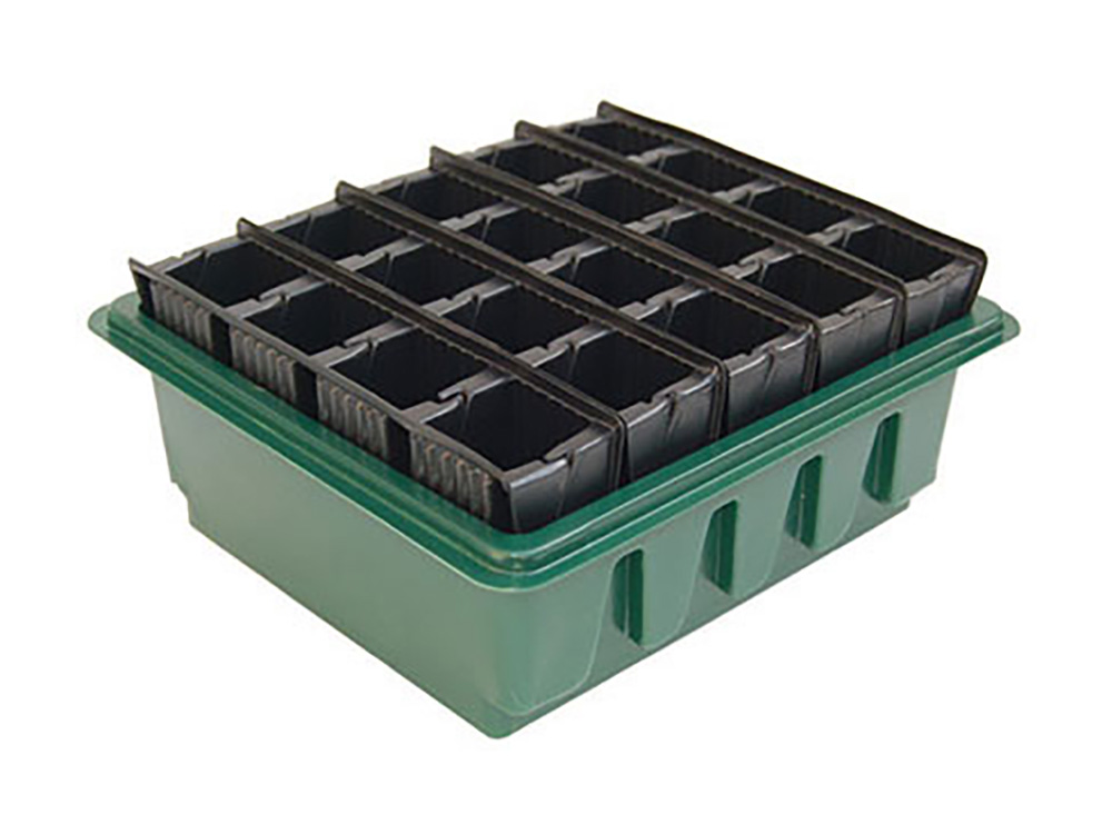 Bovendien kan de wortelgroei worden gecontroleerd door het innovatieve 'boeksysteem' van de cellen. Het systeem zorgt ervoor dat je de gegroefde cellen kan openvouwen om het wortelgestel te controleren, om de jonge zaailingen dieper te verspenen en om de uitgegroeide zaailingen gemakkelijk uit de cellen te verwijderen zonder ze te beschadigen.
