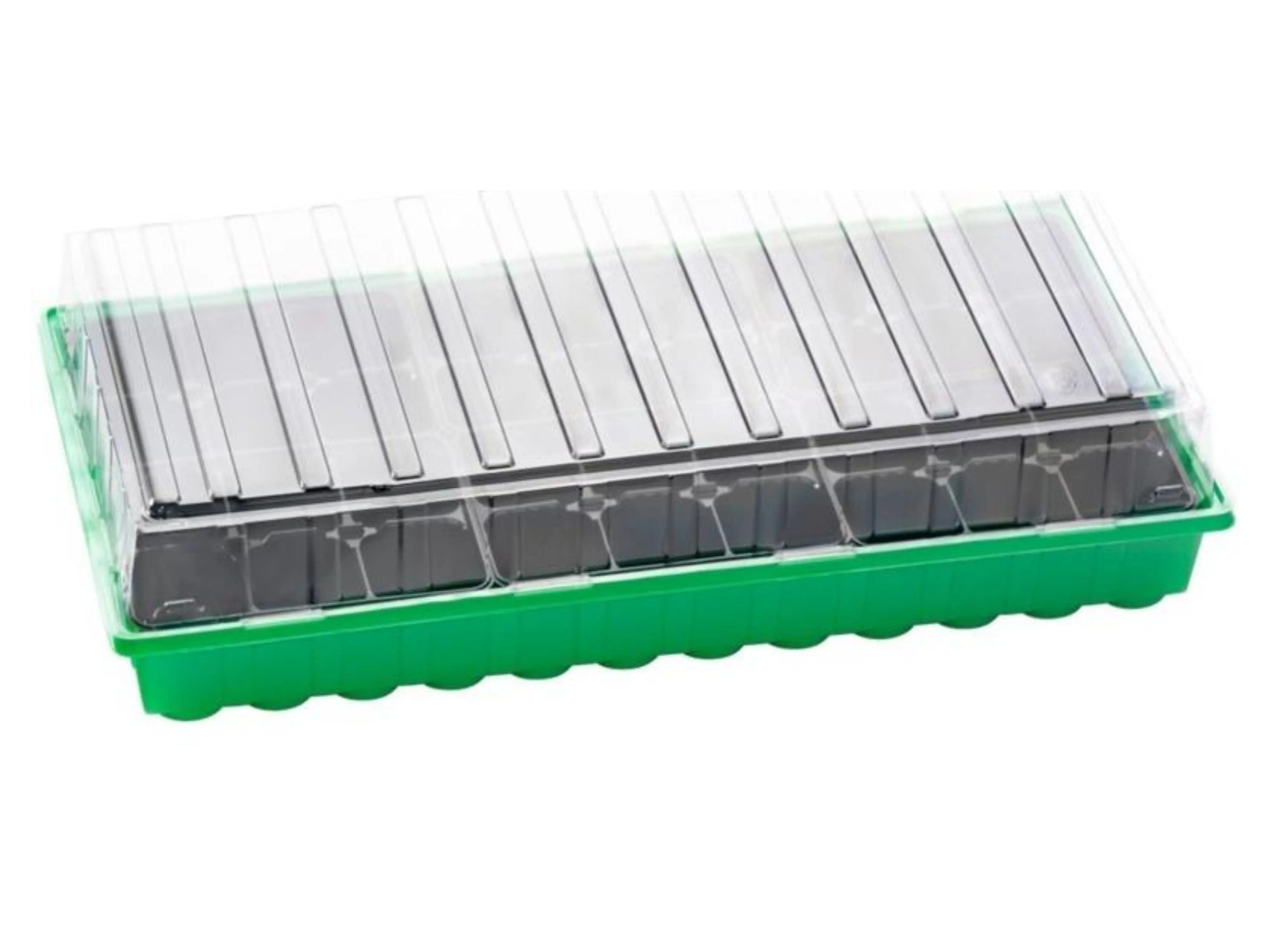 Deze handige kweekset bestaat uit 6 losse trays van 6 vierkante potjes, elk potje is 6 cm breed. Onder het transparante deksel ontstaat het perfecte opkweekklimaat voor de groei van groenten, kruiden, bloemen en andere planten.