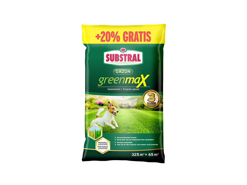 Dankzij de snelle werking van GreenmaX Substral wordt jouw gazon zichtbaar groener na amper drie dagen. De diepgroene kleur krijgt het gazon door het ijzer en de essentiële micro-nutriënten. Deze hoogkwalitatieve meststof kan worden gebruikt op elk type gazon. De micro-korrels staan garant voor een optimale spreiding en een stuifvrije toepassing.