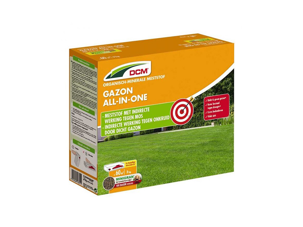 DCM Gazon All-in-One is een complete en stikstofrijke gazonmeststof die zorgt voor een dicht gazon. Een dicht gazon laat minder mos- en onkruidgroei toe.