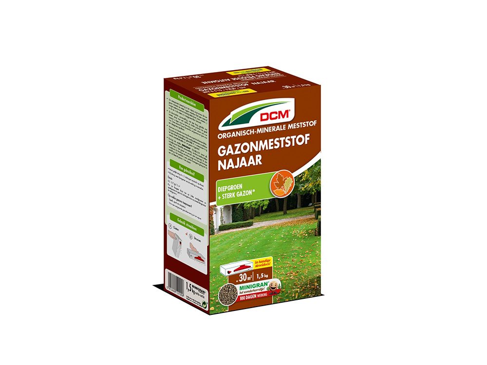 DCM gazonmeststof voor het najaar. De perfecte meststof om je grasveld in blakende gezondheid door de winter te loodsen. Dankzij het extra kalium wordt je gras een pak sterker. Specifiek in de winter wapent het zich tegen vorst en betreding, zodat er geen kale plekken ontstaan en het geen plaats laat voor mos.