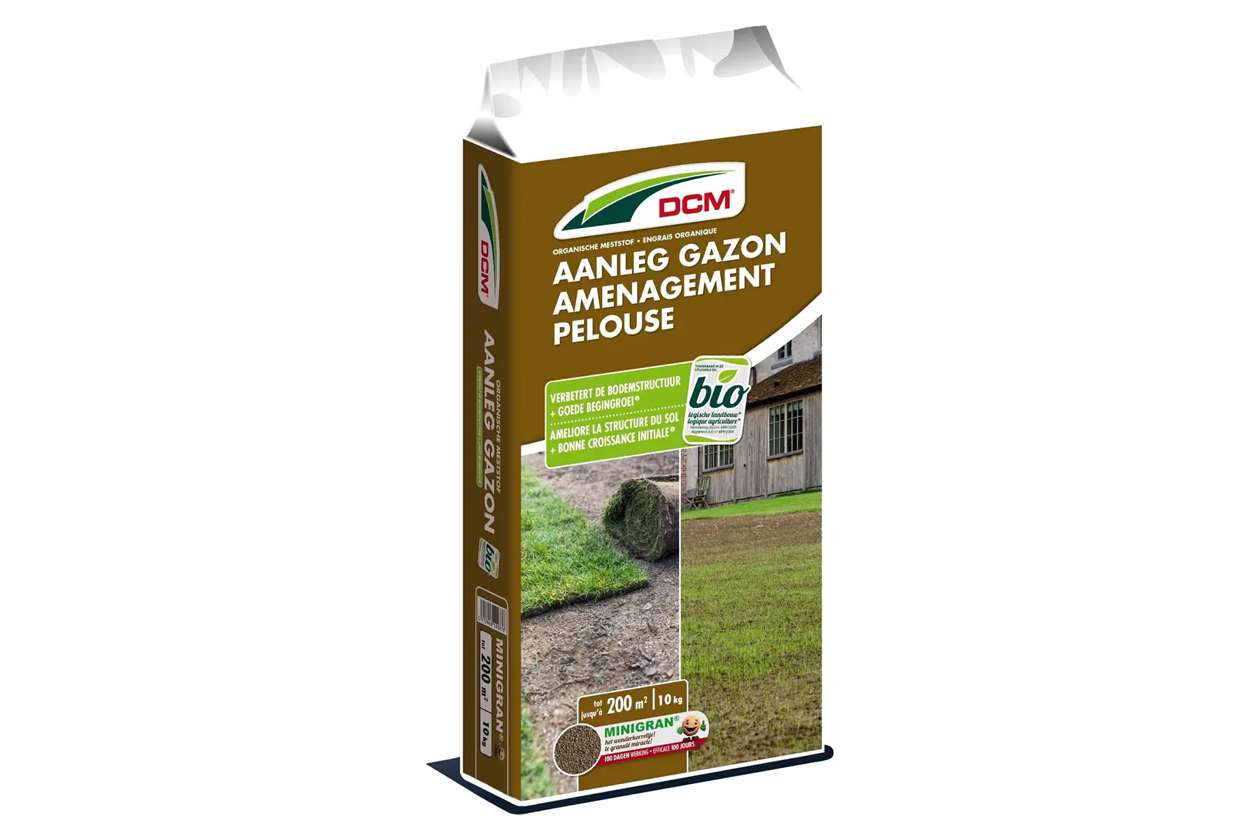 Totaaloplossing bij de aanleg van een nieuwe grasmat. Organische mest om in te werken in de grond bij het zaaien van het gazon of het leggen van graszoden. Zorgt voor een goede ingroei.