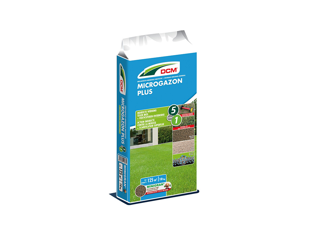 DCM organisch-minerale meststof 'Microgazon Plus' is ideaal tegen het mos en voorkomt een viltlaag die in het gazon gevormd kan worden ten gevolge van het maaien. Het gras wordt mosvrij en ook de viltlaag verdwijnt, op die manier kan het gazon de nuttige stoffen makkelijker opnemen.