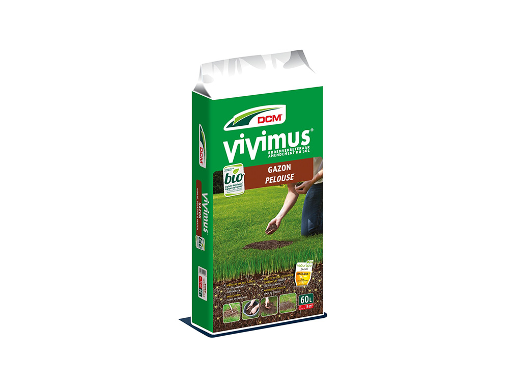 DCM Vivimus voor het gazon is een verrijkt gemengd organisch-mineraal bodemverbeterend middel rijk aan organische stof waarin bacteriën gemengd zijn