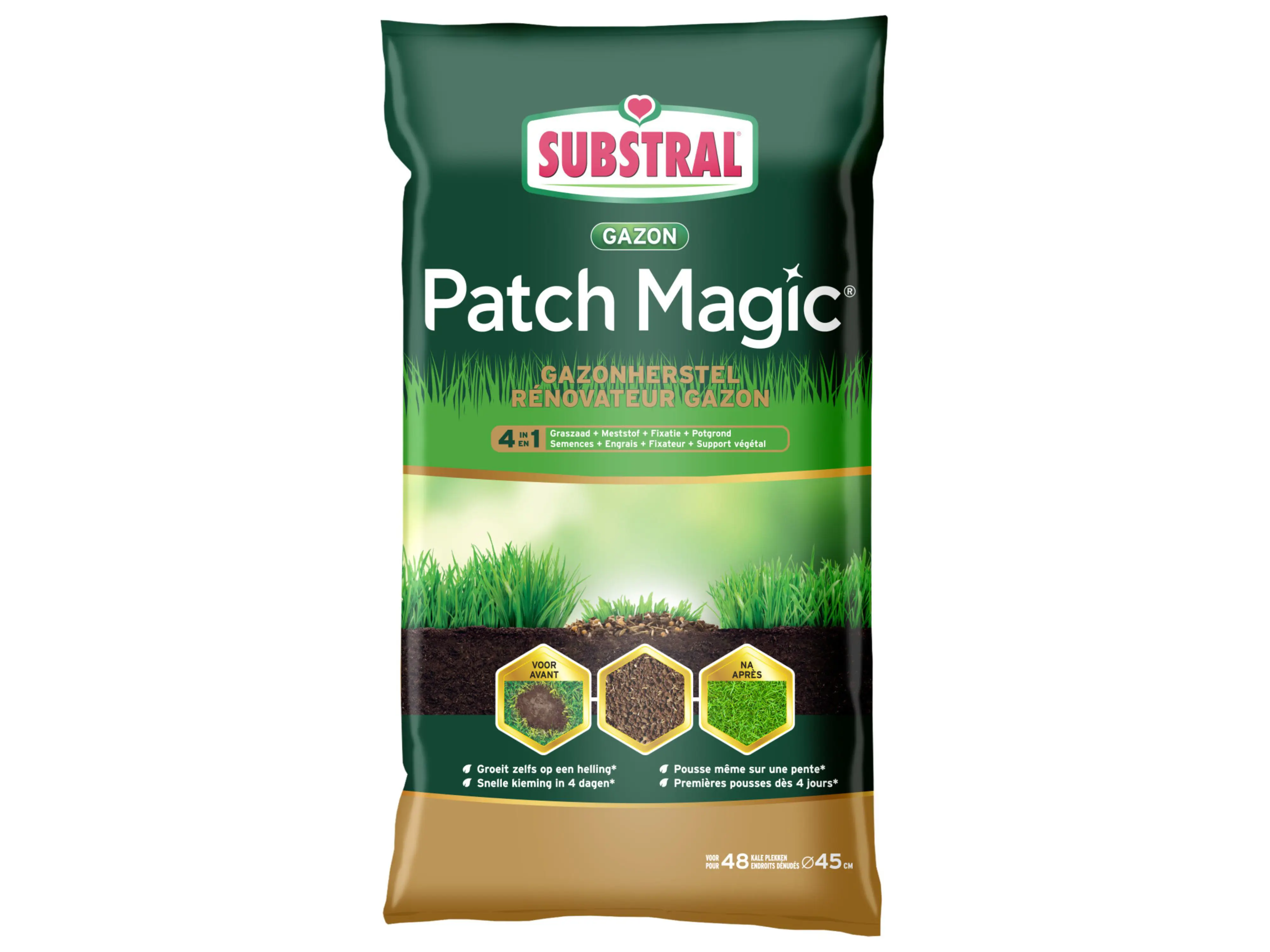 Gazonherstel Substral Patch Magic is een innovatief mengsel van graszaad, meststof, fixatie en speciale potgrond op basis van kokosvezel. Het laat je toe om kale of beschadigde plekken in jouw gazon op zeer korte tijd volledig te herstellen. Gazonherstel Patch Magic doet wonderen: in een mum van tijd krijg je opnieuw een dicht en groen gazon.