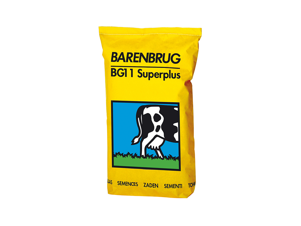 Barenbrug BG11 Superplus, een allround professioneel weidemengsel met een uitstekend aanpassingsvermogen dat ook bij minder gunstige omstandigheden productief is. Het is samengesteld uit Engels raaigras, timothee, beemlangbloem en veldbeemdgras. Beemdlangbloem groeit onder koude omstandigheden en verdampt daardoor in het voorjaar meer water. De percelen worden hierdoor sneller en beter berijdbaar.