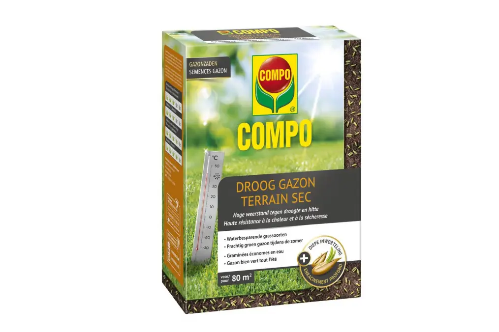 Deze aangepaste graszadenmengeling van Compo is uiterst geschikt voor droge en zonnige terreinen zodat je ook op deze plaatsen een prachtig groen gazon kunt krijgen.