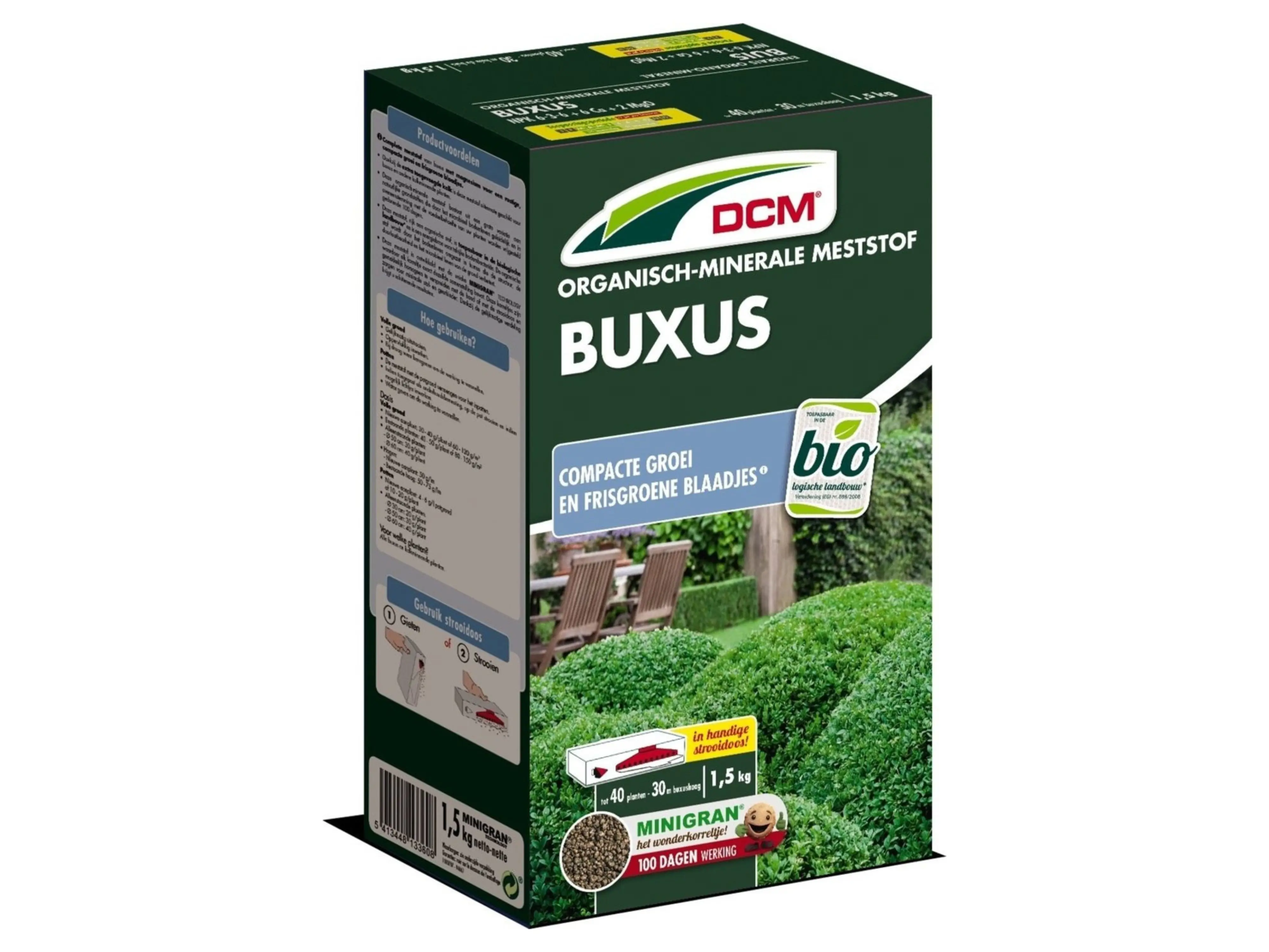 Complete meststof voor buxus met magnesium voor een rustige en compacte groei en diepgroene bladeren. Uiterst geschikt voor buxus en andere kalkminnende planten dankzij de toegevoegde kalk.
