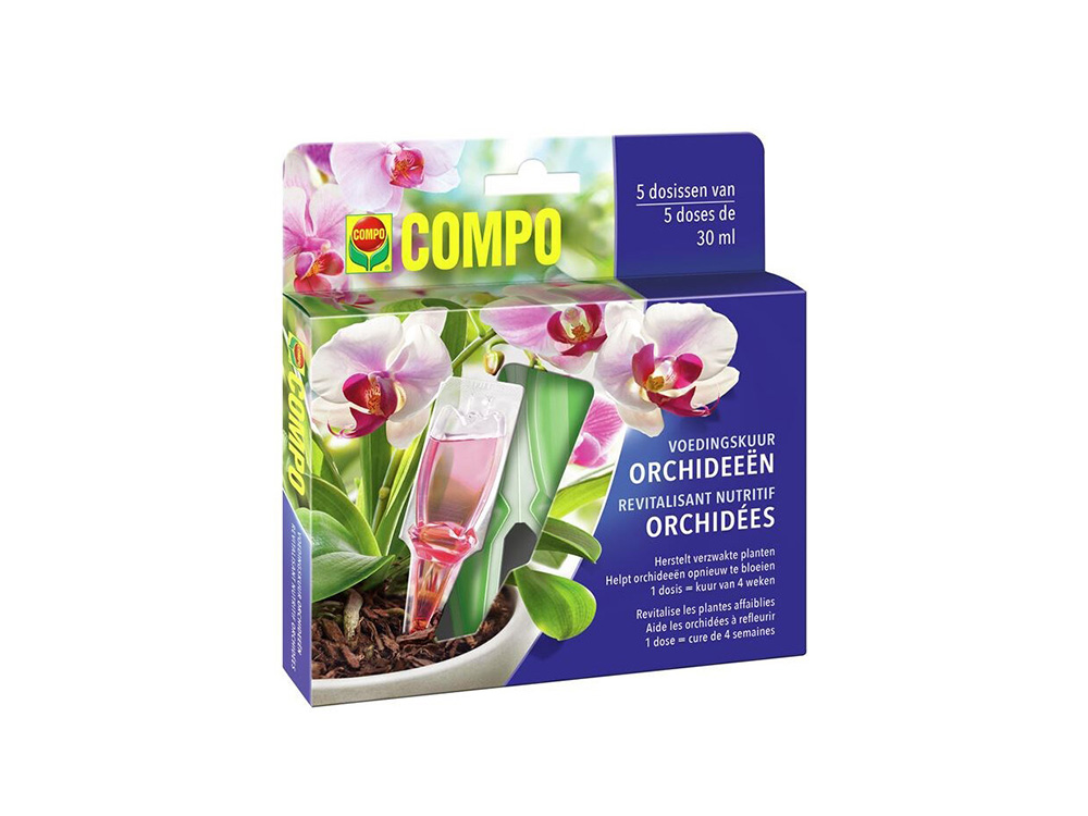 Een mooie, verzorgde en bovenal bloeiende orchidee kan wonderen doen in elke woonkamer. Een goede reden dus om je orchideeën goed te verzorgen en af en toe een boost te geven! Dankzij de voedingskuur van Compo worden jouw planten gevoed en worden verzwakte planten versterkt.