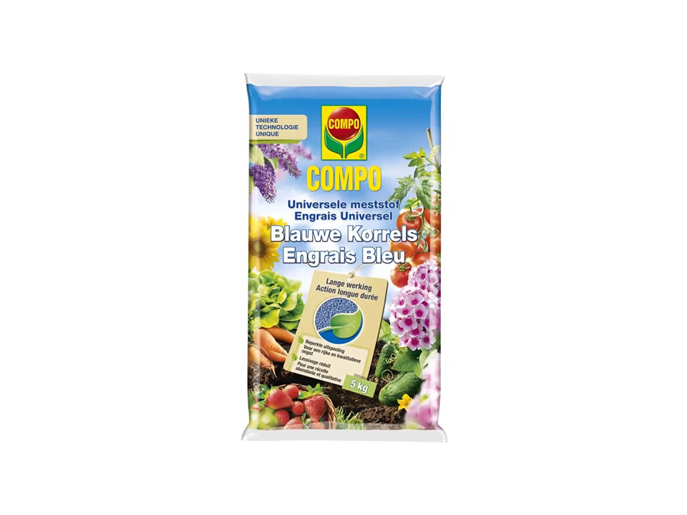 Deze hoogwaardige meststof van Compo is geschikt voor het bemesten van de gehele moes- en siertuin. De blauwe korrels bevatten alle vereiste voedings- en sporenelementen voor stevige planten en een hogere opbrengst in de moestuin.