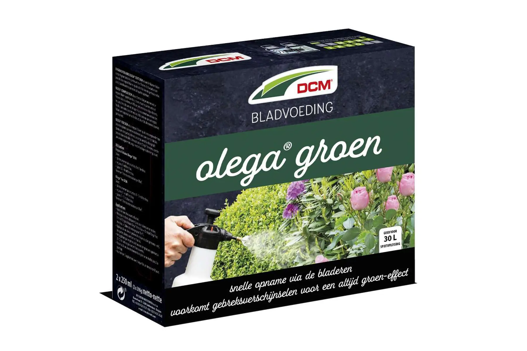 Olega groen van DCM is een complete bladvoeding voor alle groene en bloeiende planten. Deze bladvoeding voorkomt gebreksziekten en verhelpt zeer snel ijzergebrek.