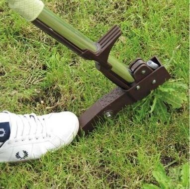In twee stappen verwijder je zonder knielen of trekken het onkruid en zijn wortel. Met de comfortabele handgreep of het voetpedaal verwijder je vervolgens het onkruid uit de grijparmen.
