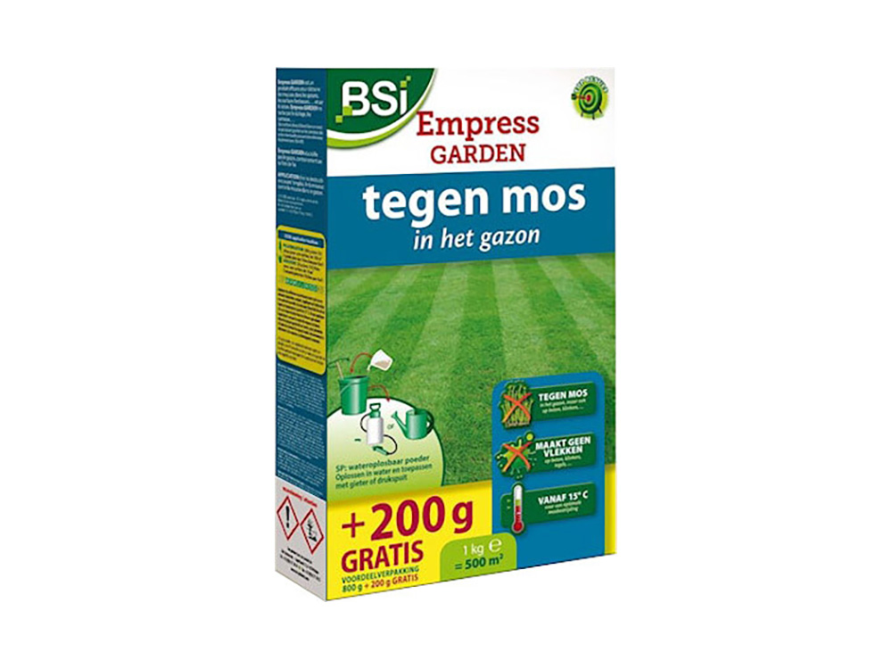 BSI Empress Garden bestrijd het mos in het gazon, maar ook op beton, klinkers,... De poeder is in water oplosbaar en kan met de gieter of drukspuit worden verdeeld.