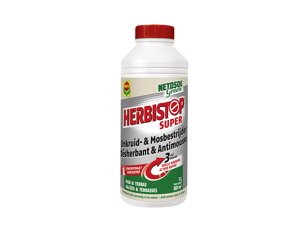 Herbistop® Super is een totale, niet-selectieve onkruidbestrijder voor het vernietigen van onkruiden, grassen en mossen op verharde permanent onbeteelde terreinen zoals opritten, paden en terrassen (asfalt, beton, kasseien, grind, ...), en niet-verharde permanent onbeteelde terreinen.
