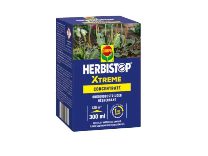 Herbistop Xtreme van Compo is een geconcentreerde onkruidbestrijder met de krachtigste formulering op de markt op basis van pelargonzuur, een werkzame stof uit de natuur. Het is geschikt voor de bestrijding van eenjarige grasachtige en eenjarige tweezaadlobbige onkruiden tussen sierplanten, bomen en heesters, fruitbomen en groentegewassen, of ter voorbereiding voor het zaaien of het planten.