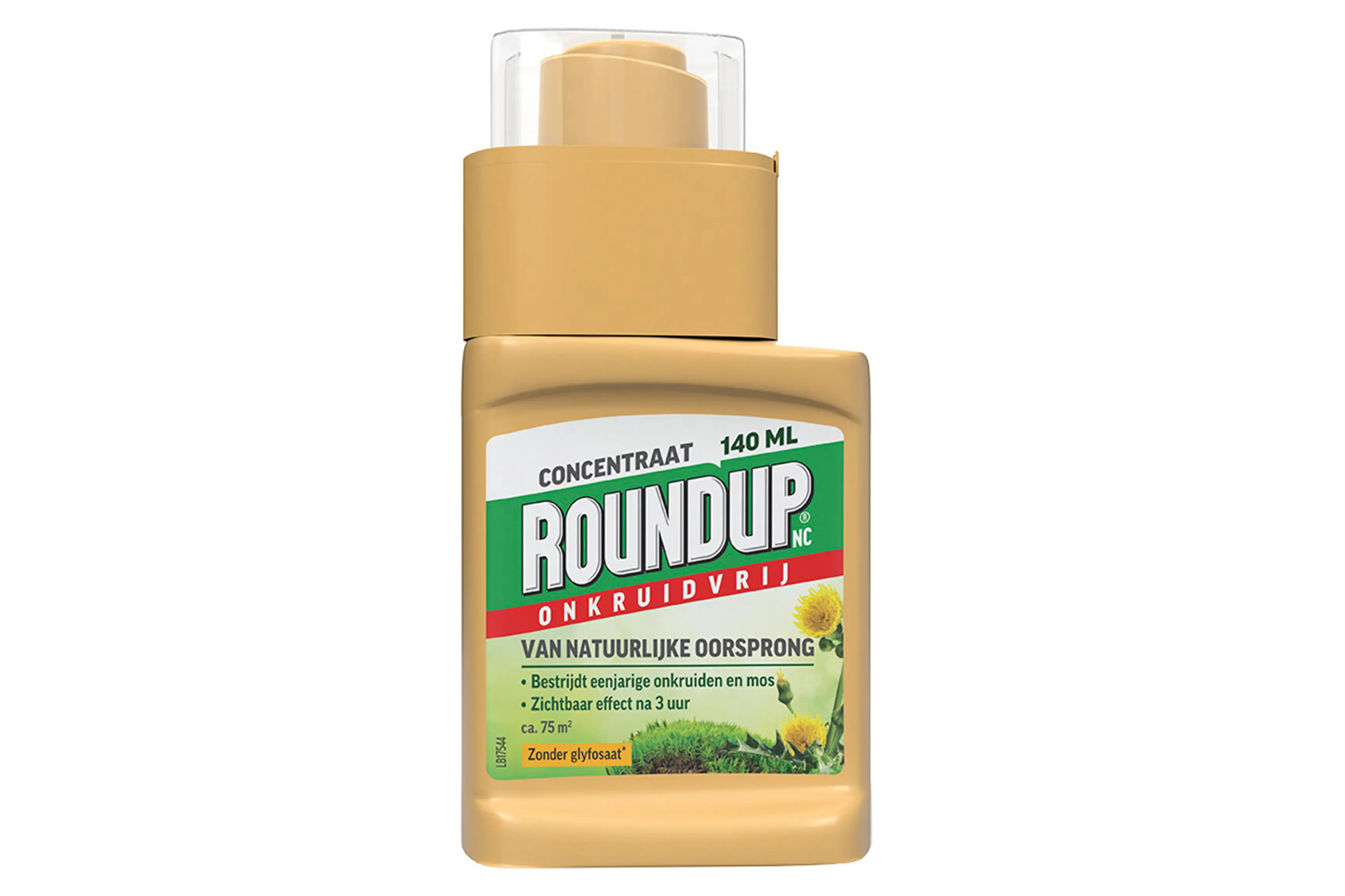 Roundup NC Natuurlijk Onkruidvrij Concentraat bestrijdt eenjarige onkruiden en mos. De werkzame stof is een grondstof die voorkomt in de natuur, namelijk nonaanzuur. Wanneer het middel bladcontact maakt, gaat het onkruid opkrullen, bruin kleuren en vervolgens afsterven. Het middel bestrijdt alle bovengrondse delen van het onkruid en kan je binnen de 3 uur reeds zien. Dit product is snel biologisch afbreekbaar in de bodem.
