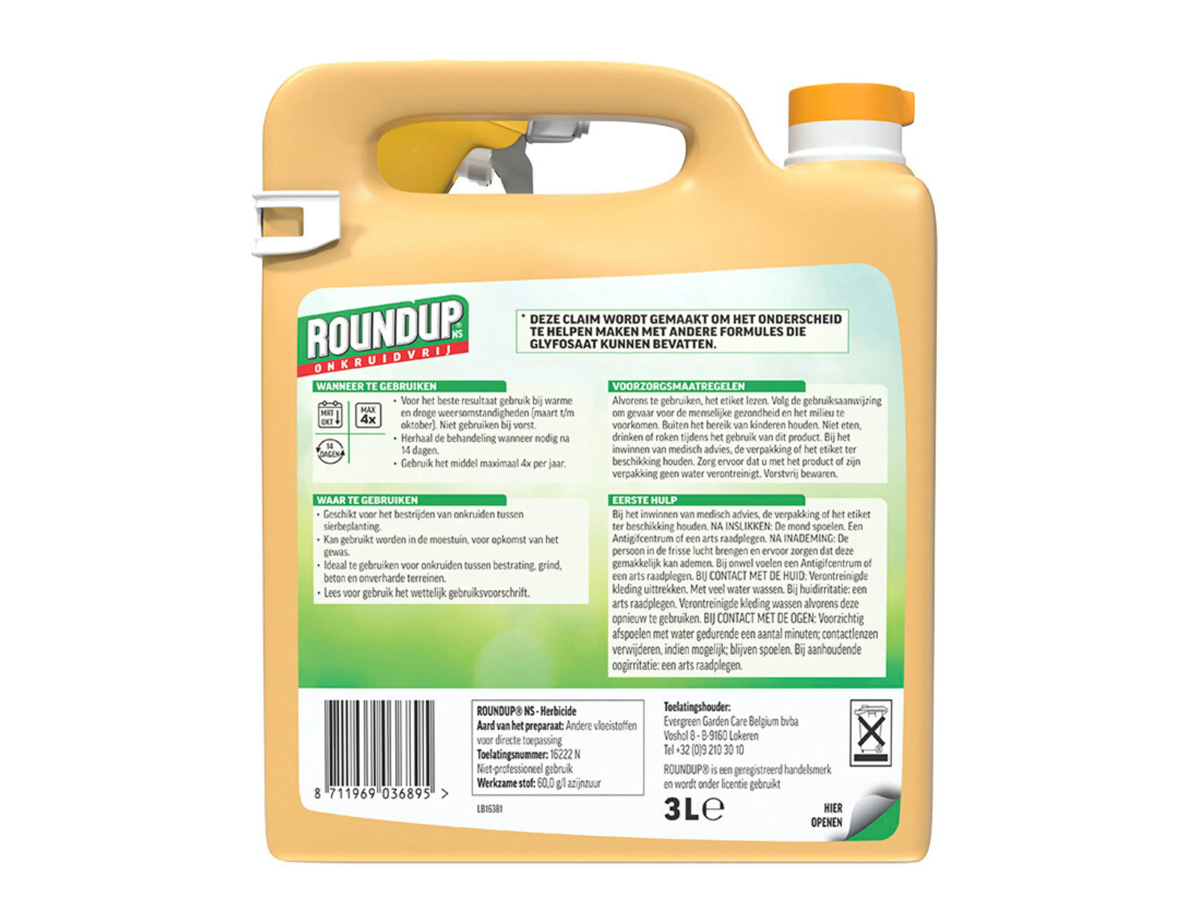 Roundup® NS Natuurlijk Onkruidvrij is een snelwerkende onkruidverdelger van natuurlijke oorsprong. Doordat het snel inactief is in de bodem, is zaaien en planten al mogelijk 1 dag na toepassing. Het product is gebruiksklaar en hoeft niet vooraf aangemengd te worden.