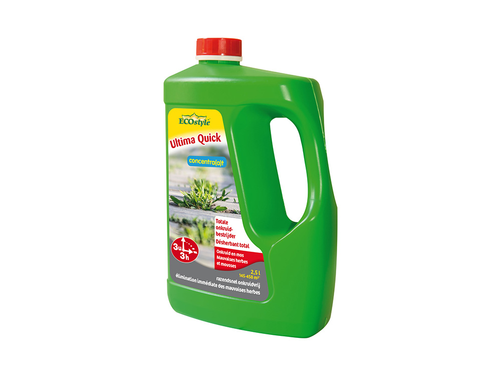 Ultima Quick concentraat is een totale onkruidbestrijder tegen onkruid en mos. Dit middel heeft een efficiënte werking tegen onkruid en grassen, mos en algen.