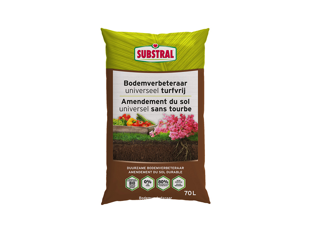 Substral zet zich voortdurend in voor het milieu en engageert zich om het turfgehalte in bodemverbeteraar streng te verminderen. Met deze 100% turfvrije samenstelling help je dus mee aan een beter leefmilieu!