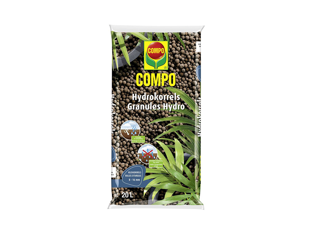 De Compo hydrokorrels zijn stofvrije en onbreekbare korrels van zuivere klei en dus compleet veilig voor planten. Ze zijn geschikt voor alle vormen van hydrocultuur, als decoratief afdekmateriaal of als drainerende laag onderaan in plantenschalen en bloempotten.