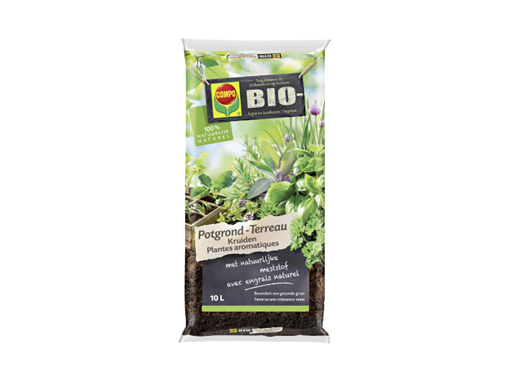 De Compo kruidenpotgrond is een hoogwaardige potgrond voor het verpotten en oppotten van allerlei kruiden in bakken, potten en in volle grond, het zaaien van verschillende kruidensoorten (tijm, peterselie, munt…) en het verspenen van jonge planten.