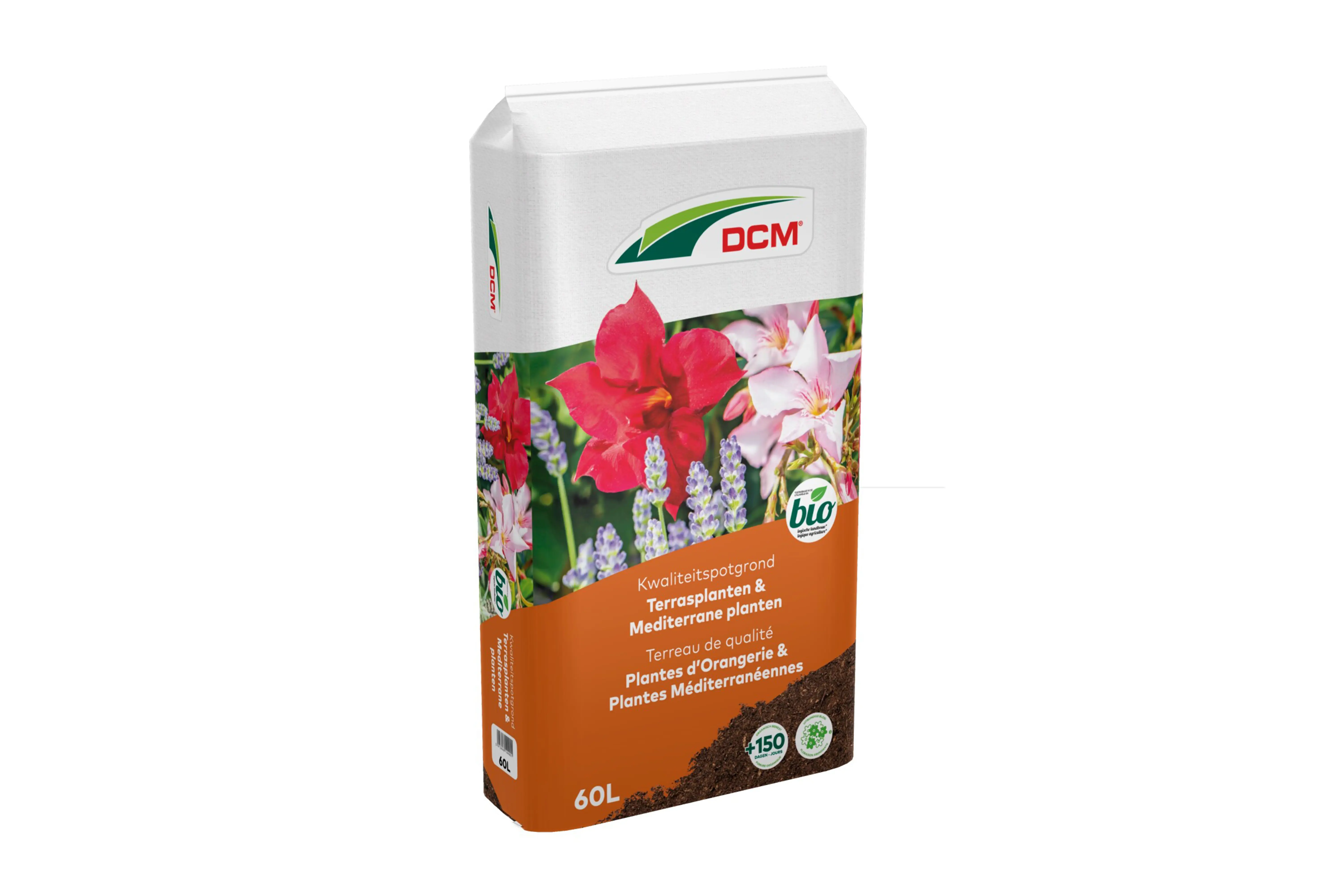 DCM Potgrond Terrasplanten & Mediterrane Planten is een biologische kwaliteitspotgrond die een optimale groei en bloei verzekert. Ideaal voor het planten van laurier, lavendel, oleander of andere mediterrane planten in de tuin of op het terras.