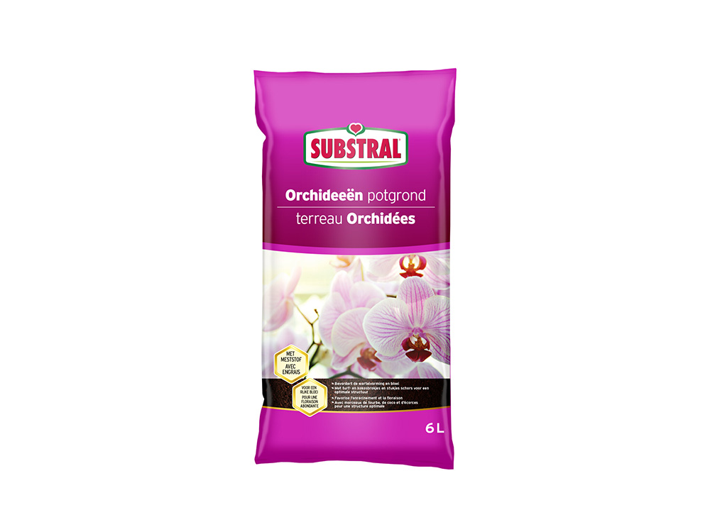 De orchideeënpotgrond van Substral met meststof is ideaal om de wortelvorming en de bloei te bevorderen van alle soorten orchideeën die niet kunnen groeien in klassieke grond. De dennenschors (groot kaliber) en turf- en kokosbrokjes vormen een drainagesysteem dat toelaat de natuurlijke leefomgeving (wat vocht en lucht betreft) te creëren voor orchideeën.