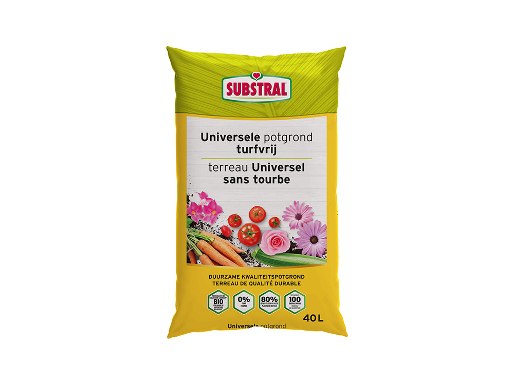 Deze universele potgrond van Substral is 100% turfvrij en geschikt voor alle planten in potten en in volle grond. De mengeling is verrijkt met organische meststof, samengesteld met 100% natuurlijke ingrediënten die gebruikt kunnen worden in de biologische landbouw. De potgrond bevat voeding voor 100 dagen.
