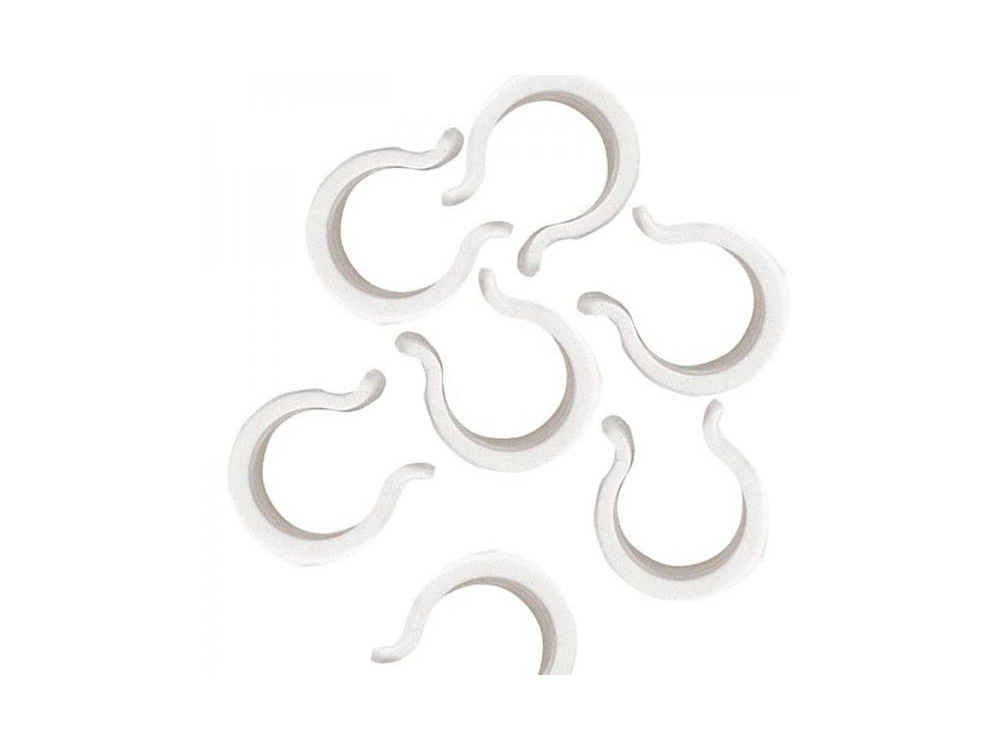 Stevige kunststof klemmen voor het vastzetten van folie, insectengaas, weringsnet of zeil aan buisvormige structuren.
