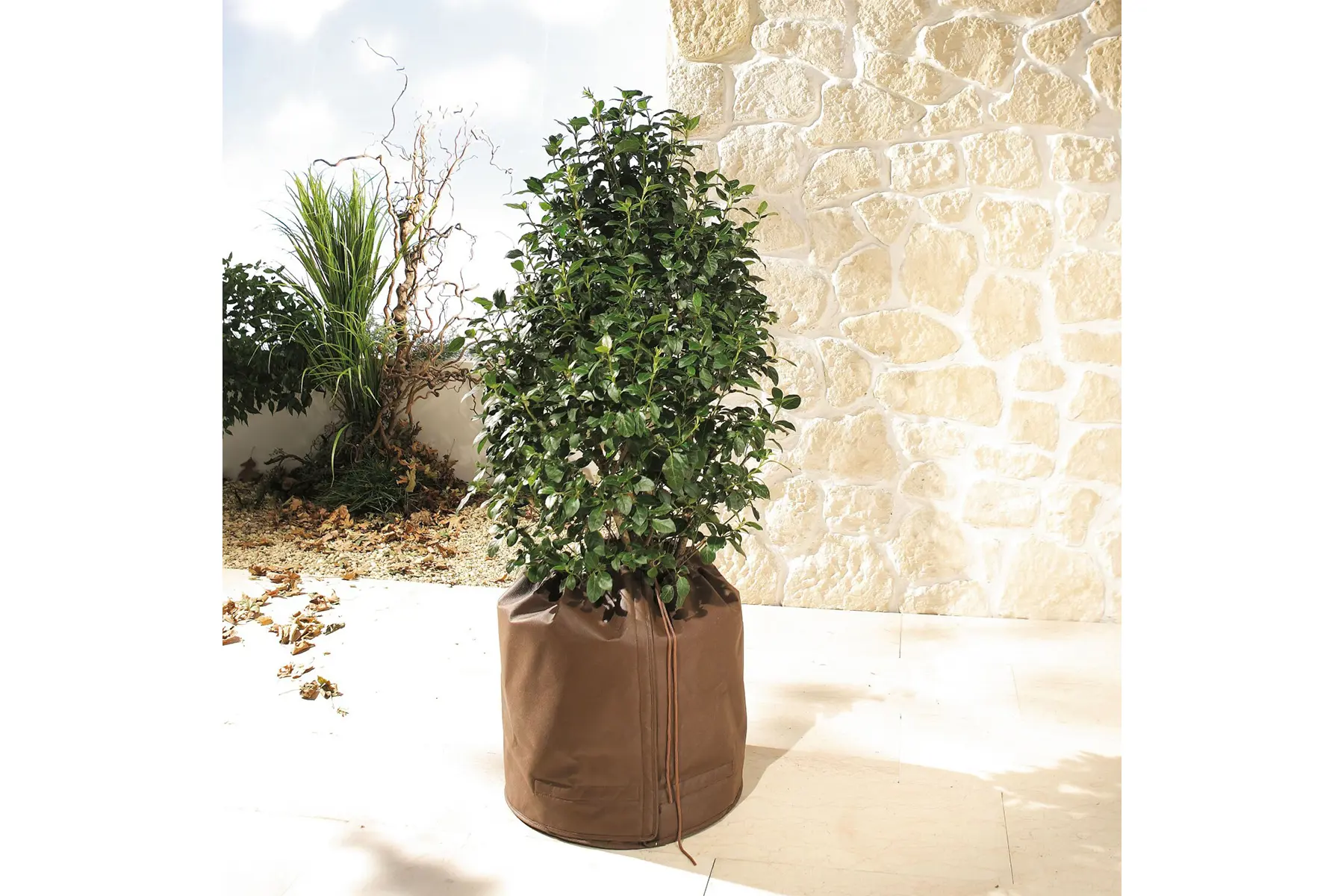 Deze thermoplus beschermhoes voor kuipplanten biedt een uitstekende bescherming voor stenen potten en de wortels van jouw favoriete kuipplanten. Deze thermo potbescheming gemaakt van zeer hoogwaardig materiaal beschermt tegen vrieskoude en wind en dus ook tegen uitdroging.