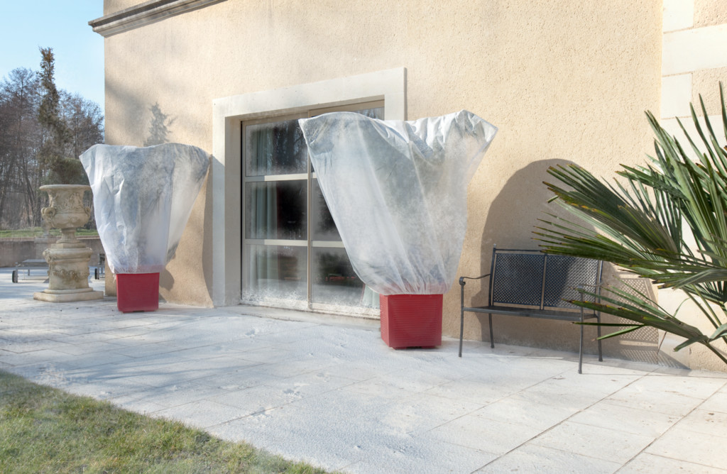 - Bij kuipplanten is het belangrijk om niet alleen de plant te voorzien van een hoes maar om ook de pot zelf in te wikkelen. Zo voorkom je dat de wortels vorstschade oplopen.