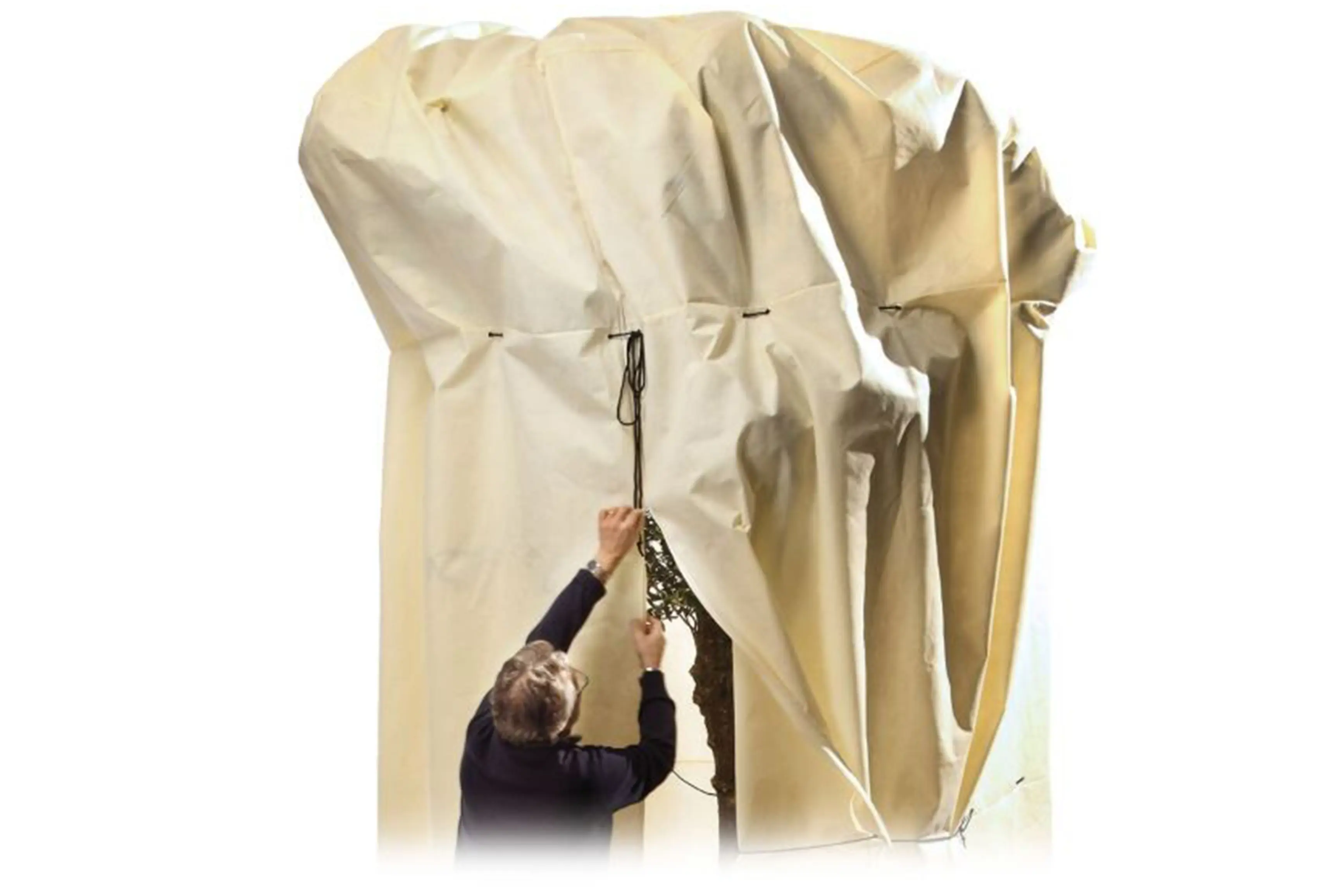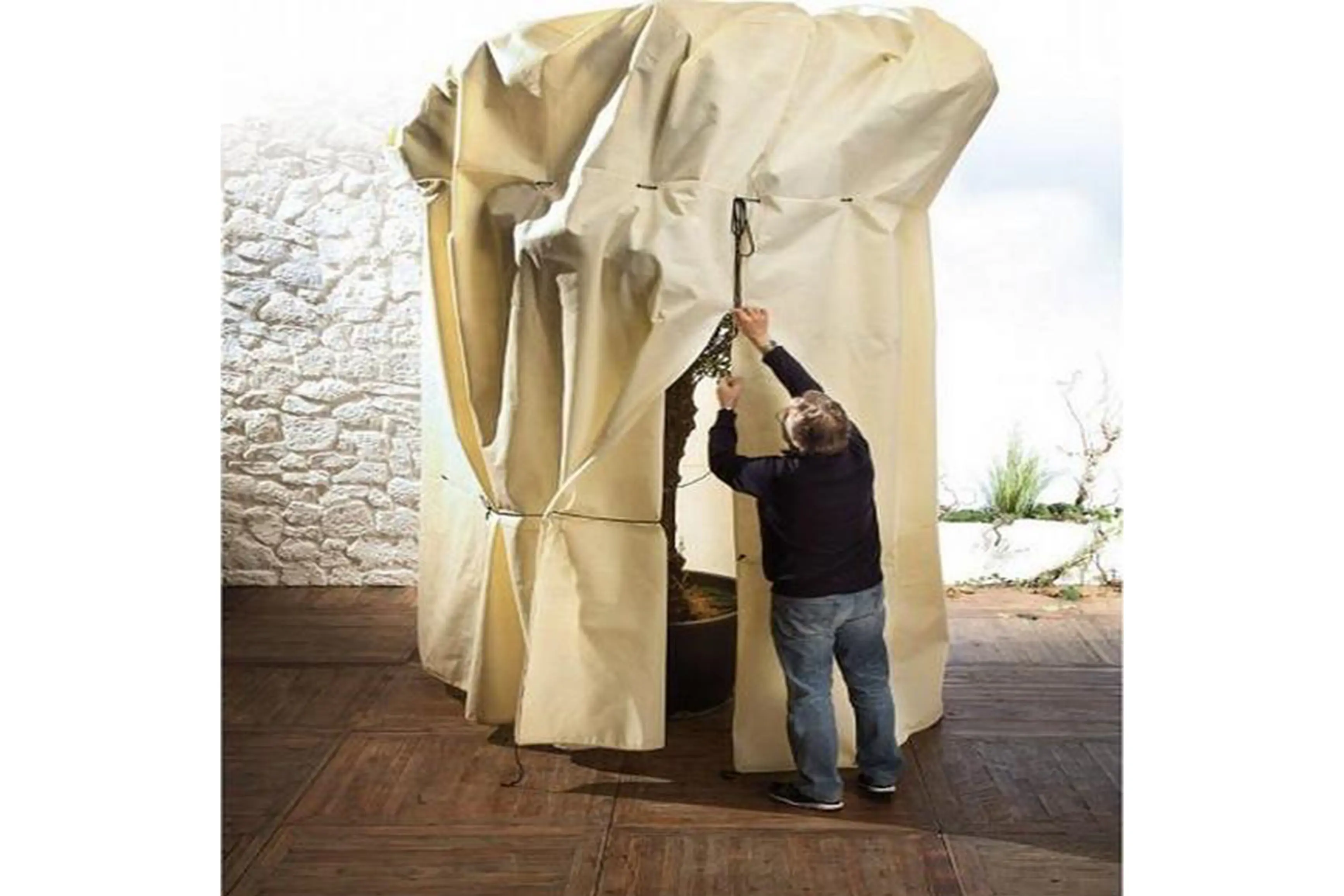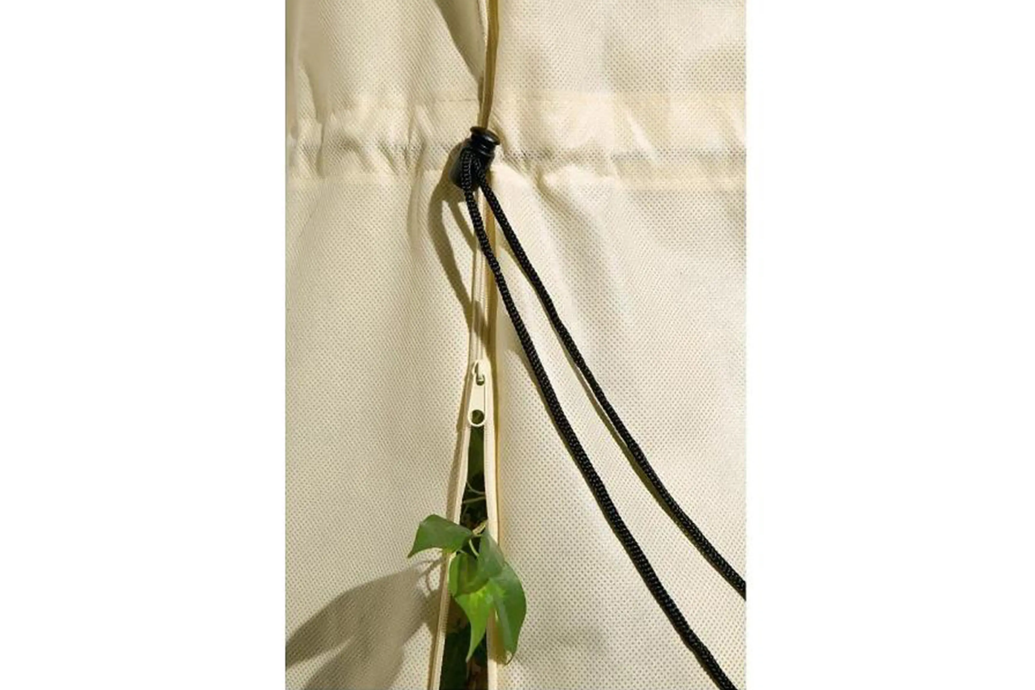 De beschermhoes is voorzien van een rits waardoor je de planten snel kan inpakken, controleren en terug kan uitpakken. Met de voorziene trekkoord kan je de hoes stevig rond de pot aanspannen. Dankzij de rits en de trekkoorden zit de thermohoes als gegoten rond jouw planten zodat hevige wind er (bij het correct aanbrengen) praktisch geen vat op kan krijgen. Bij gewone vliesdoeken is dit tot ieders frustratie vaak wel het geval.