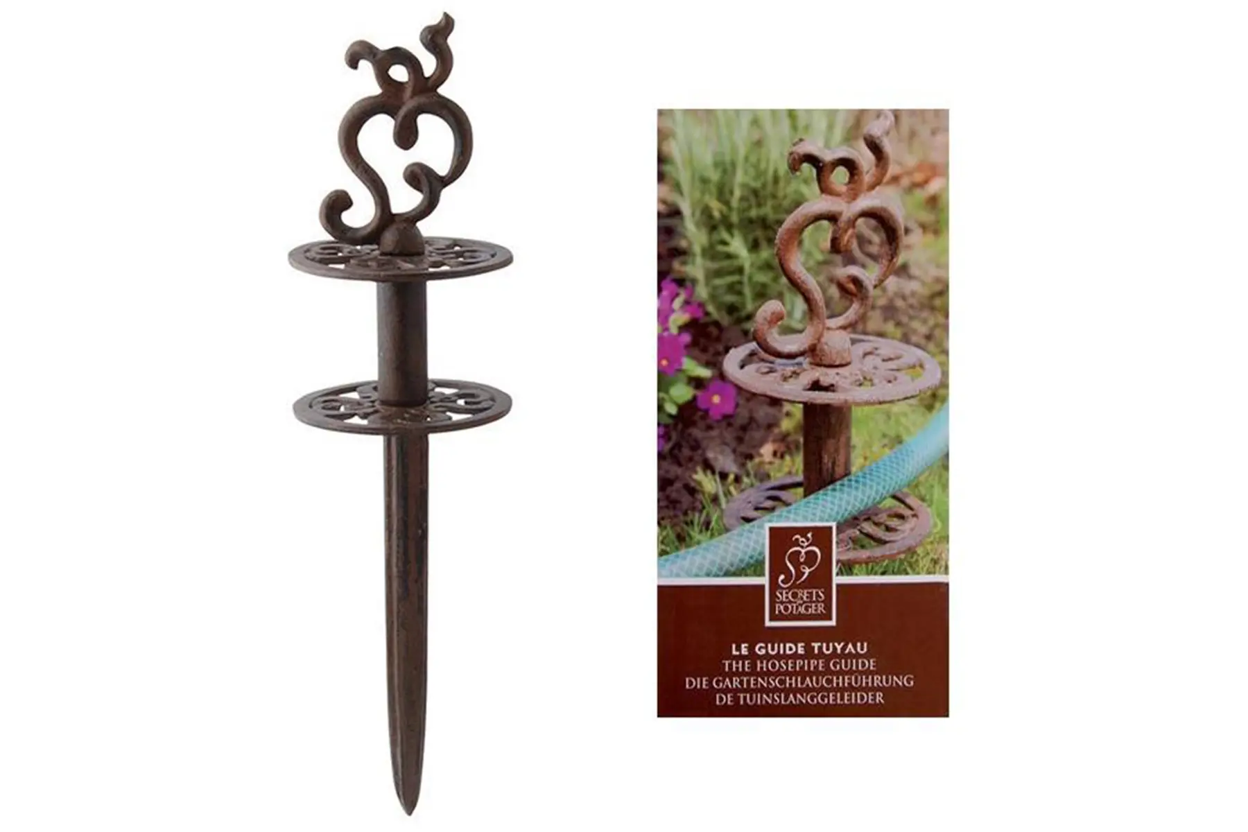 Tijdens het sproeien in de tuin is het soms lastig om te voorkomen dat de tuinslang bloemen of struiken platdrukt. Deze tuinslanggeleider van Esschert Design biedt de oplossing. Je kunt hem stevig in de grond drukken op plekken waar je jouw planten wil beschermen, zodat je niet per ongeluk de mooie planten in je tuin verpest.