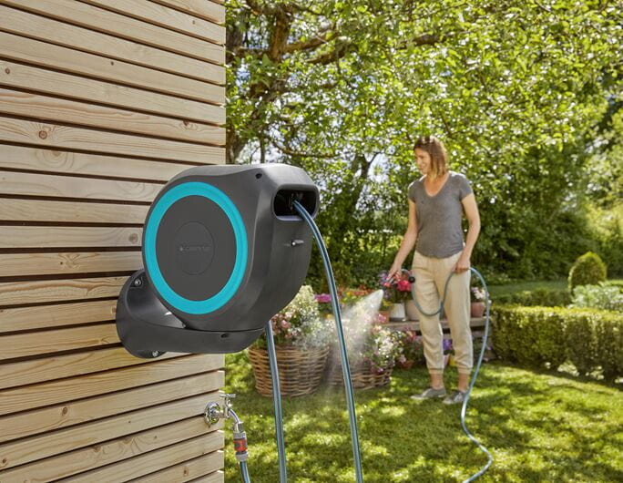 Dankzij de slang- en kraanaansluitingen van het Original Gardena System kan je eenvoudig en flexibel een verlengstuk of ander compatibel Gardena element op de slang aansluiten. Slangopzetstukken zoals sproeiers, broezen en wasborstels kunnen onder de muurbeugel worden bevestigd en opgeborgen zodat je deze altijd bij de hand hebt.