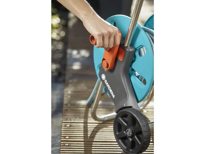 De Gardena CleverRolll S zorgt voor ruimtebesparende opslag van de tuinslang. De grote, stevige slinger zorgt voor het gemakkelijk oprollen van de slang. Innovatieve vorstbestendigheid en 5 jaar garantie garanderen maximale kwaliteit "Made in Germany".