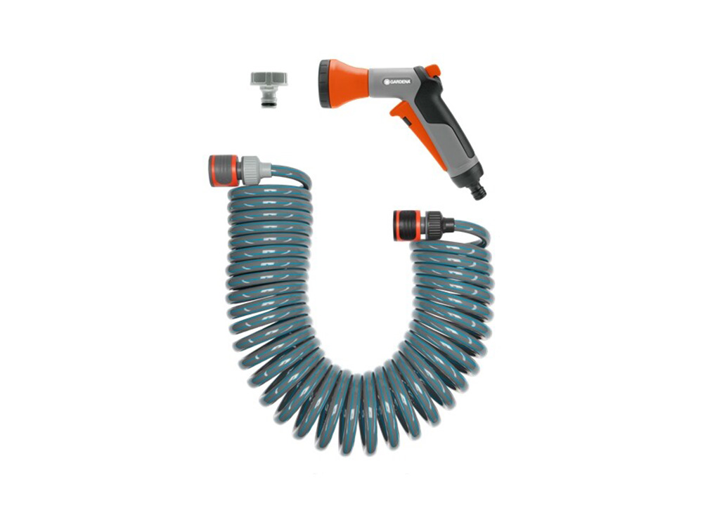 De sproeikop ligt prettig in de hand en de hoeveelheid water is traploos instelbaar. Deze Gardena spiraalslang is ideaal voor het bewateren van stadstuinen.