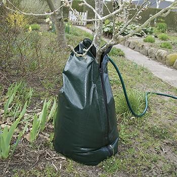 Irrigatiezak om pas aangeplante bomen slim te bewateren. De zak wordt om de steel geritst en gevuld met water. Over een tijdspanne van 5 à 6 uur, geeft de zak haar water terug af aan de grond rond de boom. Het helpt bij de groei van jonge planten, net na aanplant.