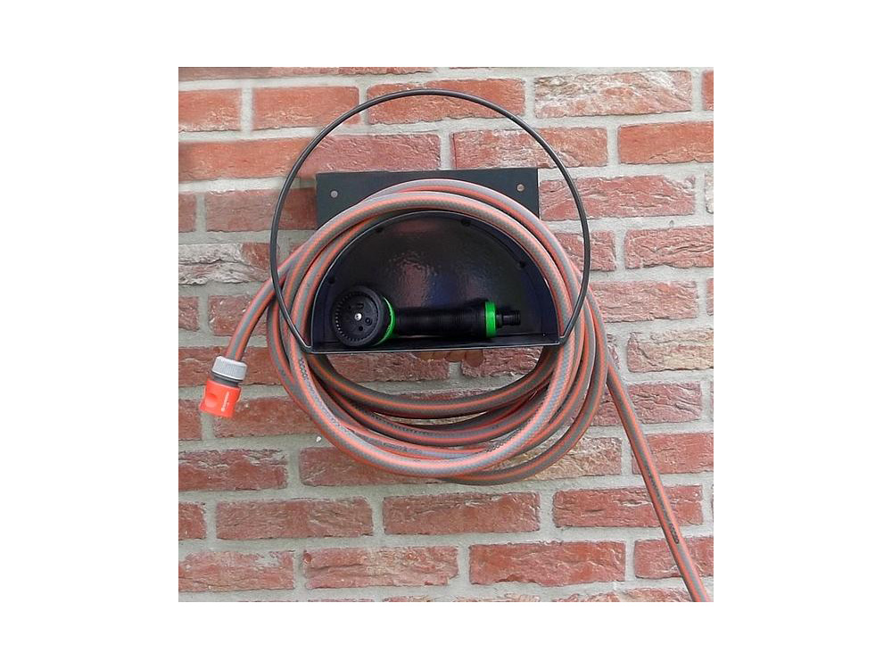 Berg jouw tuinslang praktisch en snel op met deze klassieke tuinslanghouder die je gewoon met 2 schroeven aan de muur kunt bevestigen. De houder is goed voor een standaard tuinslang van ongeveer 25 meter (12,5 mm).