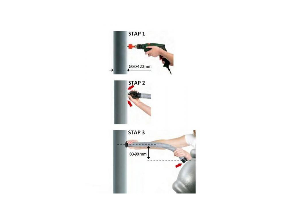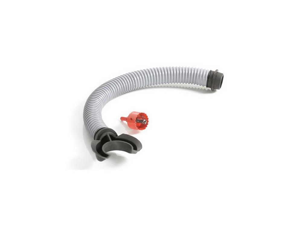Met dit systeem verbind je de regenton rechtstreeks met de regenpijp om het regenwater van op het dak in de ton te verzamelen. Met de bijgeleverde klokboor boor je het gepaste gat in de regenpijp en in de regenton.