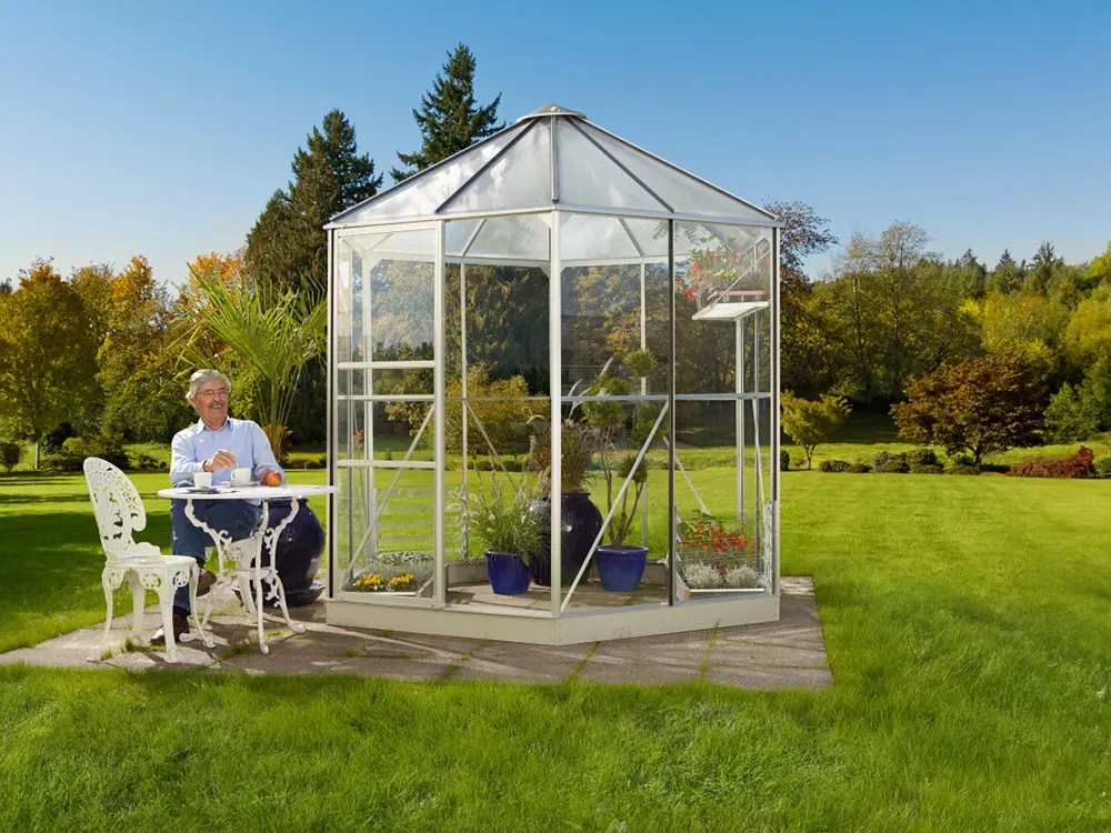 De Hera tuinkas combineert het ontspannen gevoel van een paviljoen met het praktische nut van tuinieren in een kas. Het prieel biedt voldoende ruimte voor hobbytuiniers en hun favoriete gewassen.