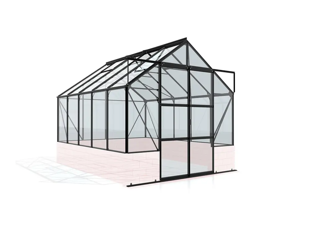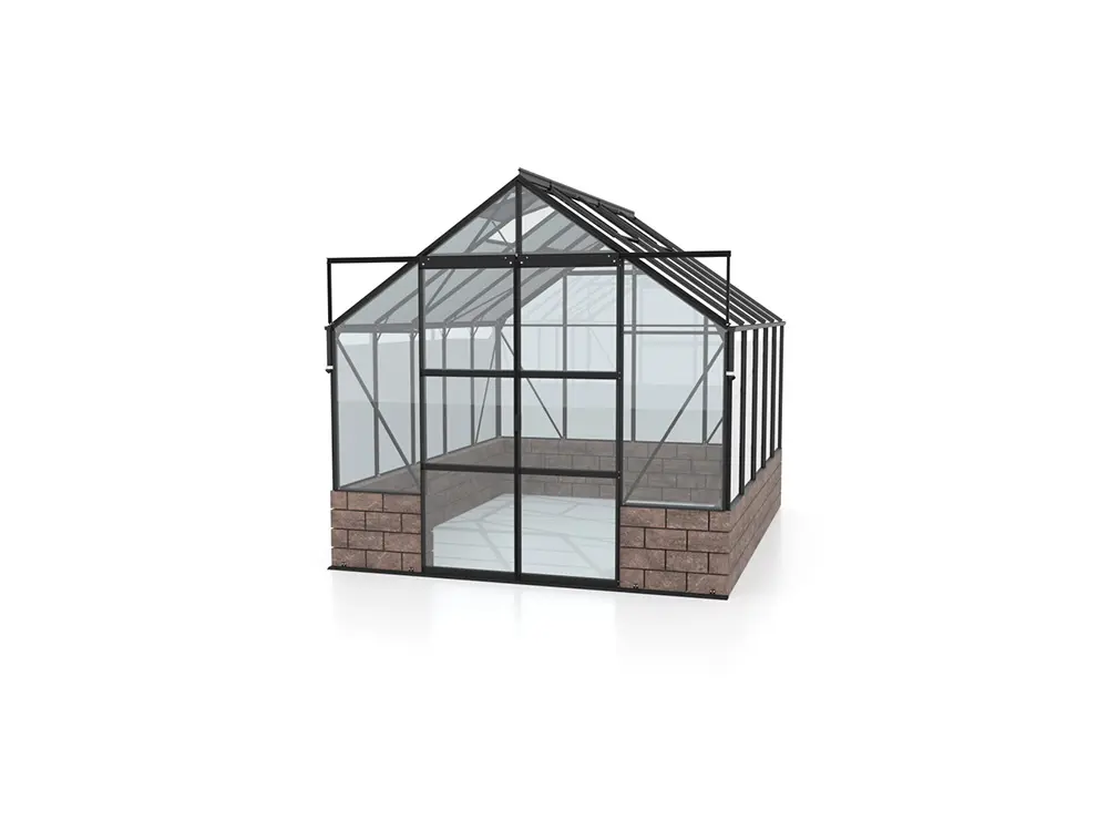 Mercurius is een fraai ogende tuinkas speciaal ontworpen voor de veeleisende tuinier die zowel kwaliteit als esthetiek belangrijk vindt. De kas dient op een stenen of houten wand/muur met een hoogte van 50 cm gemonteerd te worden. Deze onderbouw verhoogt de isolatie en dus ook het rendement van jouw kas. Het zorgt bovendien voor een persoonlijke touch zodat de kas helemaal naar jouw stijl kan worden opgebouwd. Het frame bestaat uit stevige, zwart gepoedercoate aluminium profielen.