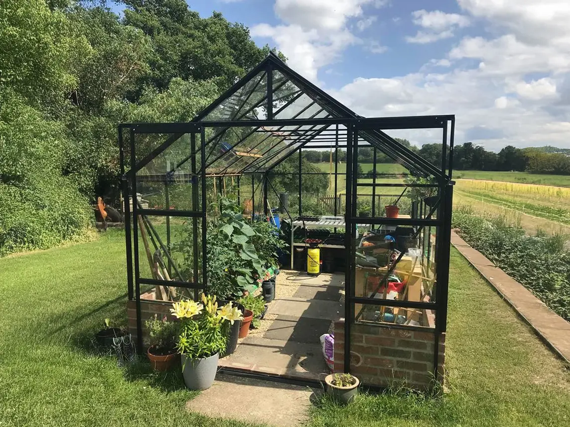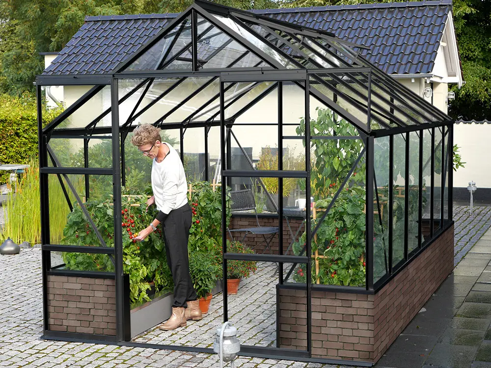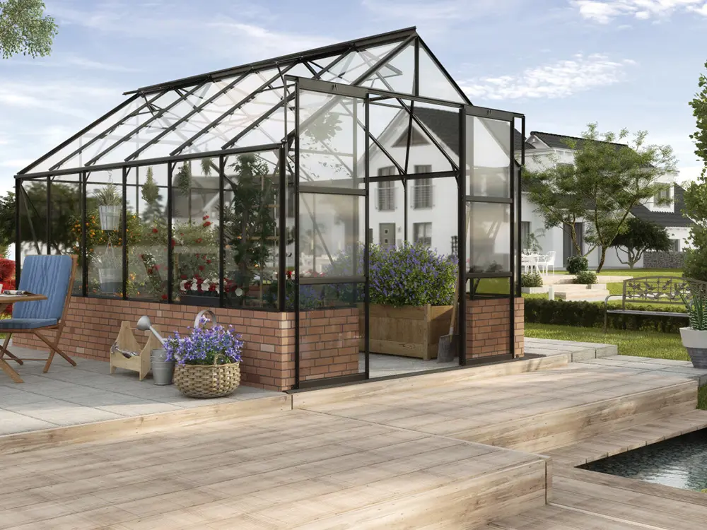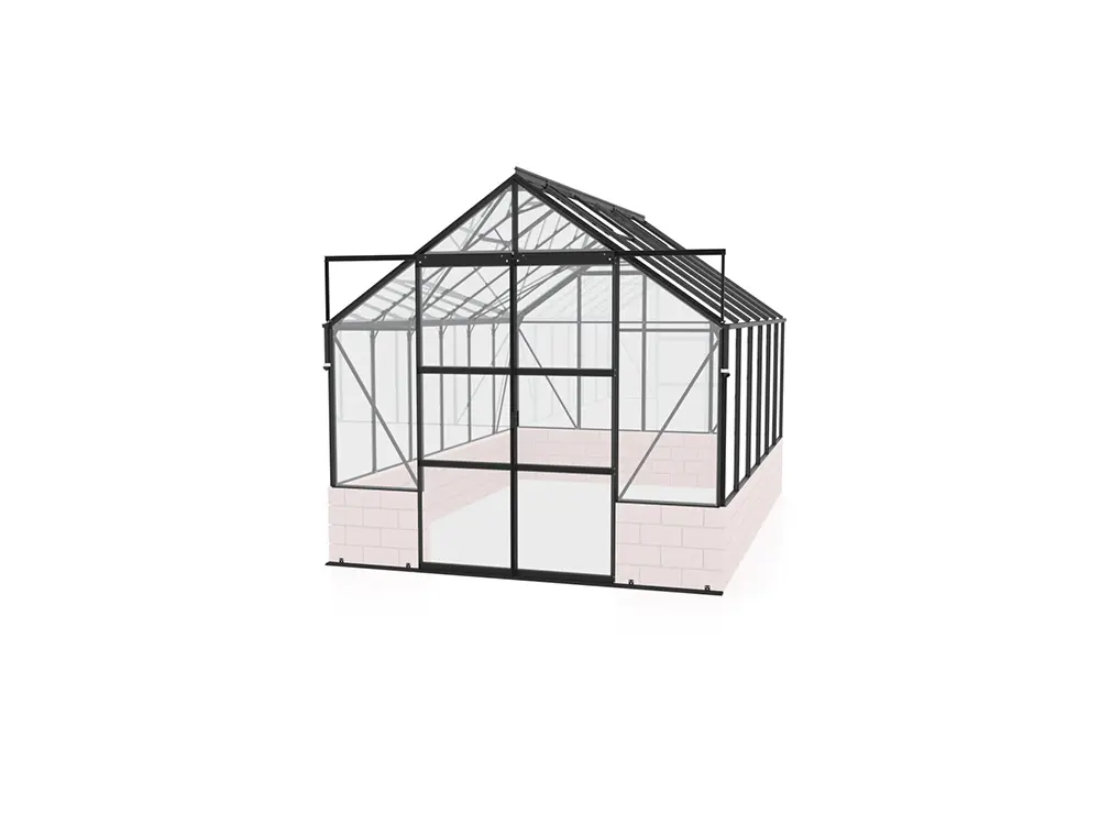 Mercurius is een fraai ogende tuinkas speciaal ontworpen voor de veeleisende tuinier die zowel kwaliteit als esthetiek belangrijk vindt. De kas dient op een stenen of houten wand/muur met een hoogte van 50 cm gemonteerd te worden. Deze onderbouw verhoogt de isolatie en dus ook het rendement van jouw kas. Het zorgt bovendien voor een persoonlijke touch zodat de kas helemaal naar jouw stijl kan worden opgebouwd. Het frame bestaat uit stevige, zwart gepoedercoate aluminium profielen.