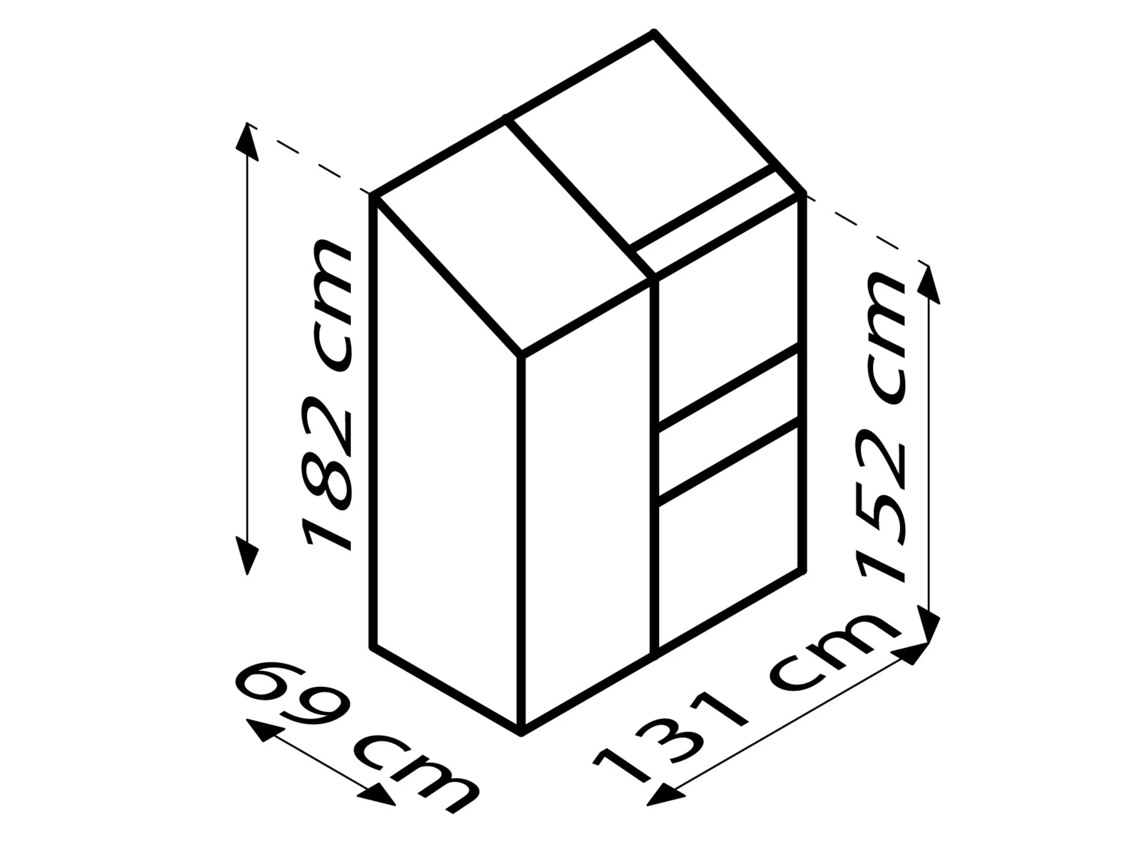• Productafmetingen ca. 0,69 m × 1,31 m × 1,82 m (B × L × H)