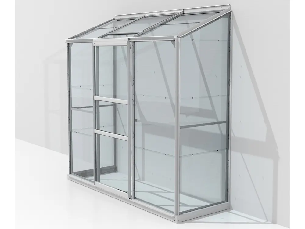 De profielen zijn vervaardigd uit geanodiseerd aluminium waardoor ze er steeds als nieuw blijven uitzien, en het frame is standaard ingevuld met 3 mm veiligheidsglas.