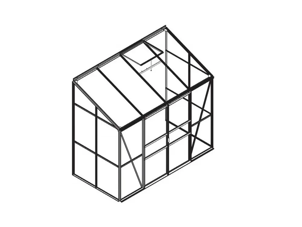 De Ida 3300 tuinkas is uitgerust met een dubbele schuifdeur en één dakraam.