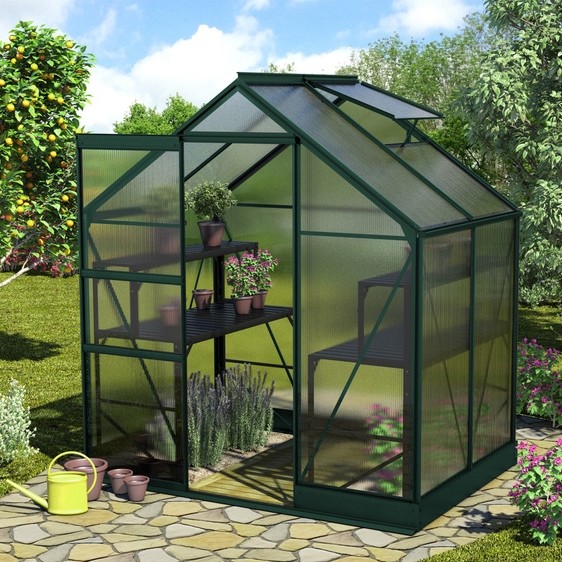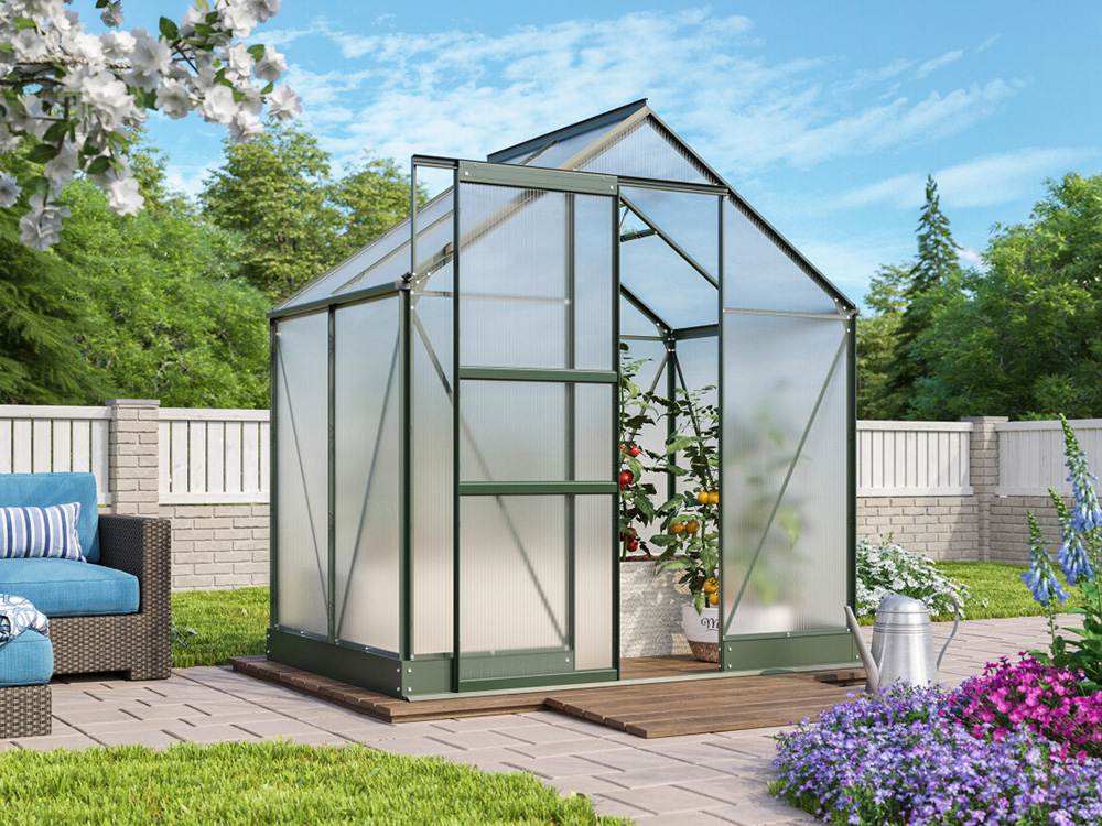 Standaard wordt de tuinkas geleverd met 4 mm polycarbonaatplaten. Deze dubbelwandige platen zijn licht van gewicht, bijna onbreekbaar en bieden een uitstekende isolatie! In optie kan je kiezen voor 6 mm polycarbonaat.