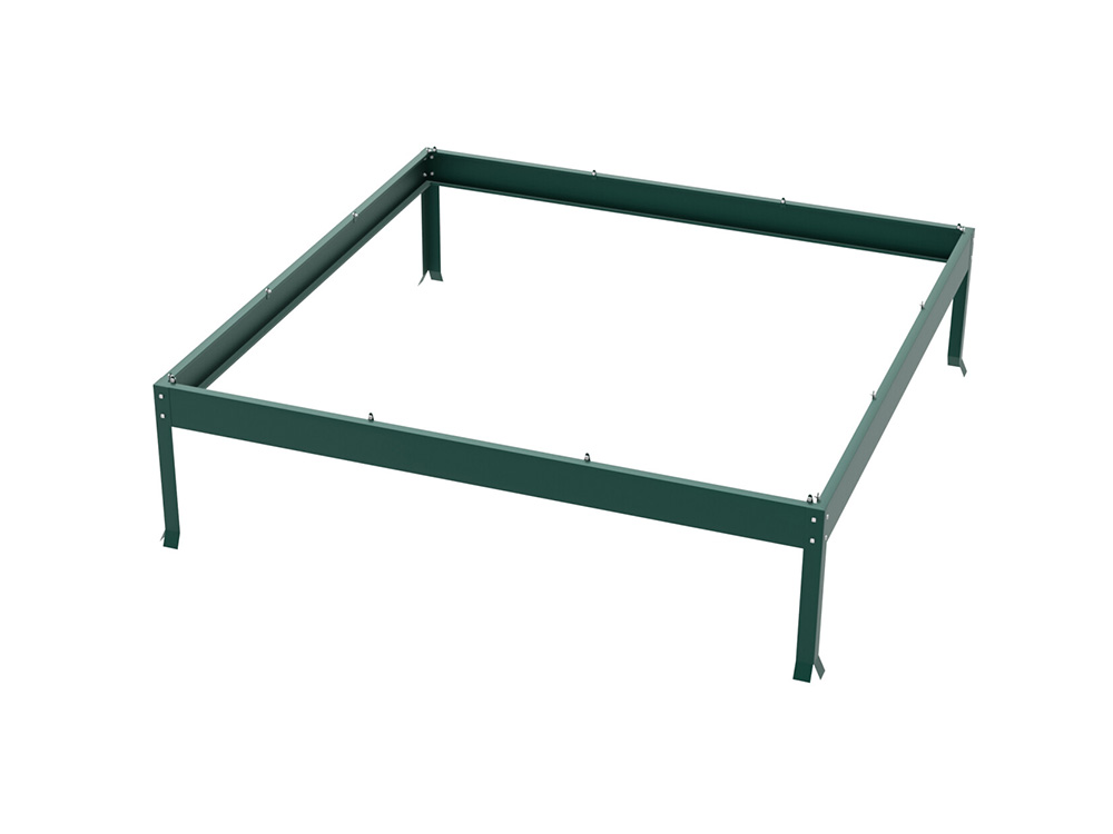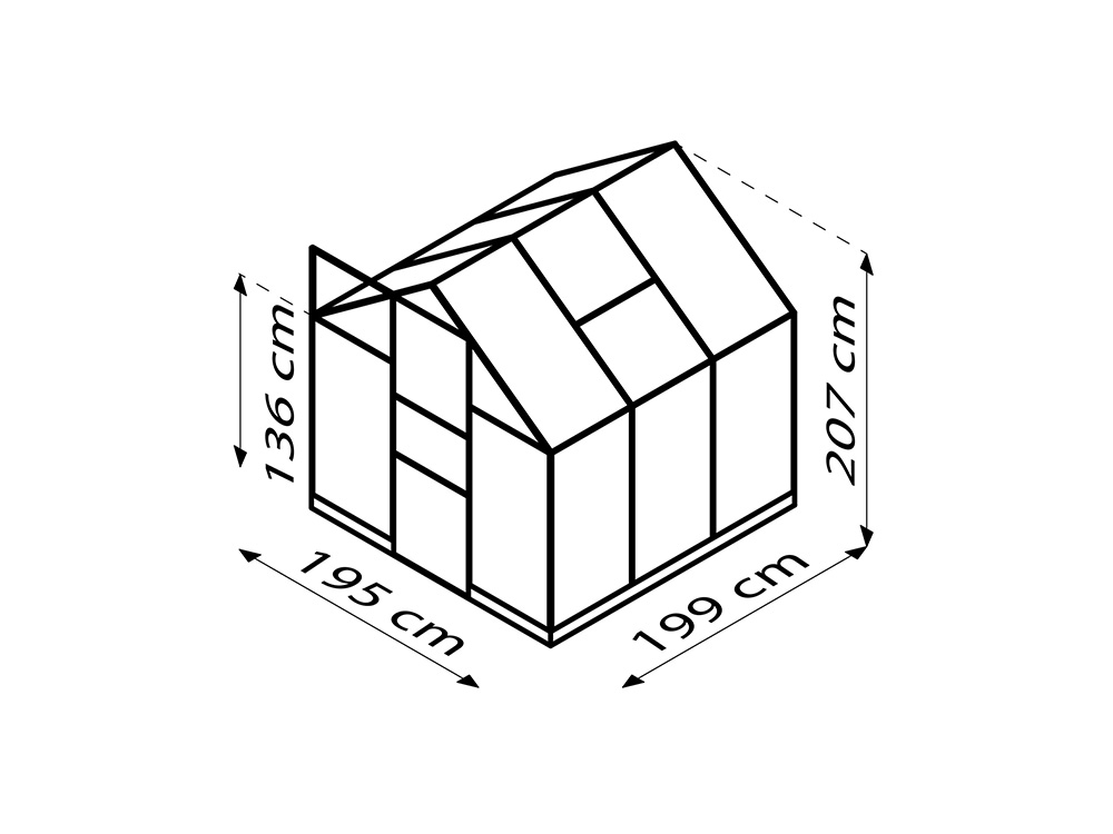 Het frame is opgebouwd uit groen poedergecoate aluminium profielen. De schuifdeur van 61 cm breed kan zo worden opgehangen dat ze zowel naar links als naar rechts kan openen. De kas is tevens voorzien van geïntegreerde dakgoten en fundering in het kasframe. De fundering zorgt voor een stevige en optimale verbinding tussen het frame en de fundering.
