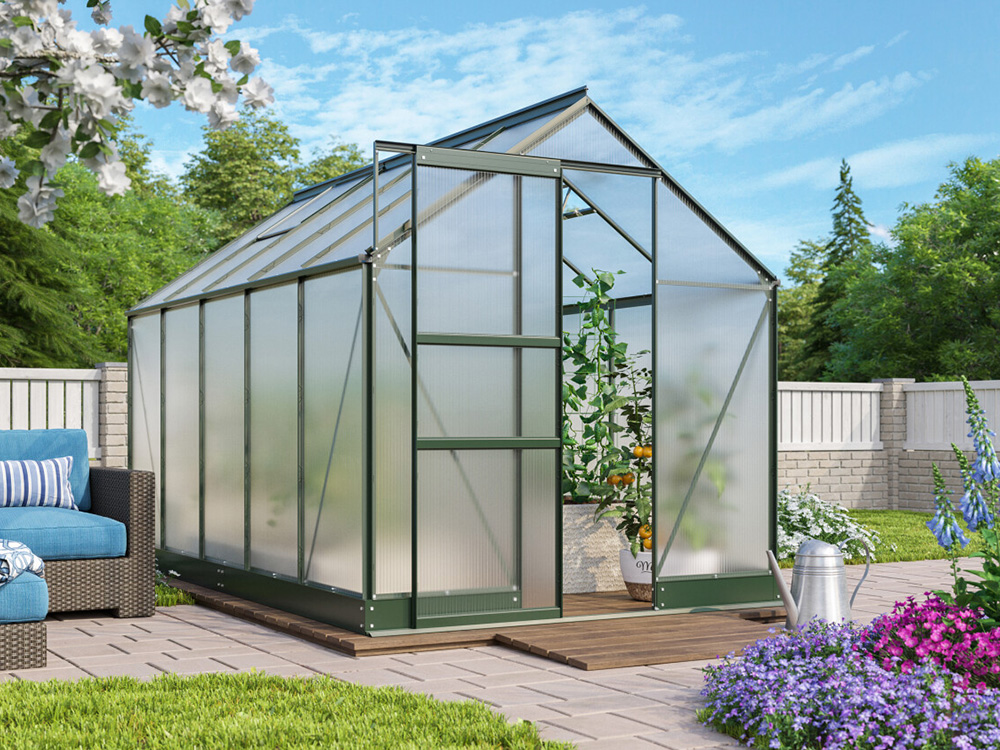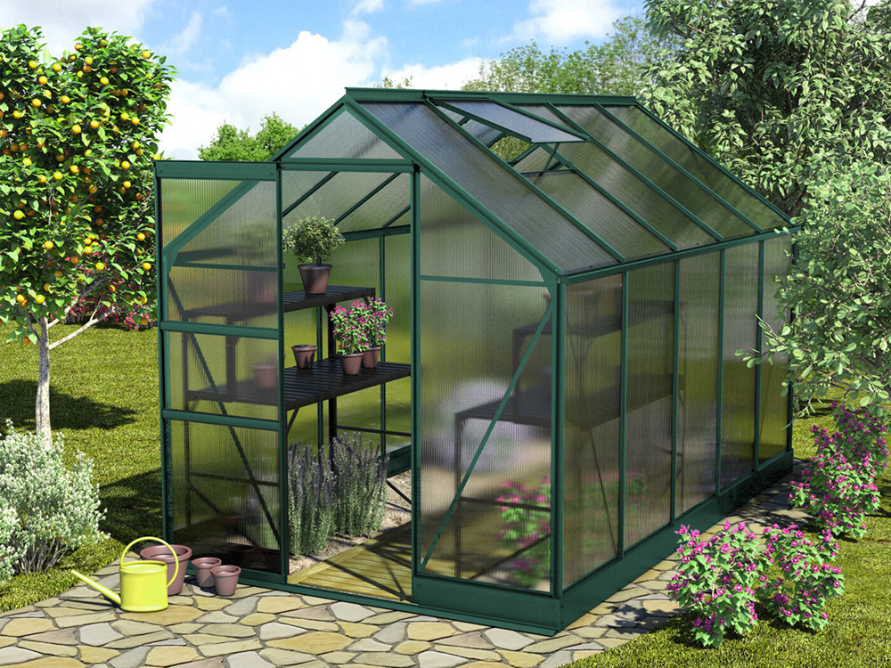 Standaard wordt de tuinkas geleverd met 4 mm polycarbonaatplaten. Deze dubbelwandige platen zijn licht van gewicht, bijna onbreekbaar en bieden een uitstekende isolatie! In optie kan je kiezen voor 6 mm polycarbonaat.