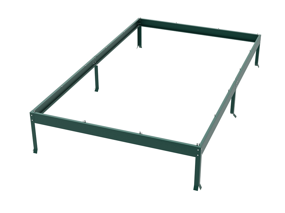 Het frame is opgebouwd uit groen poedergecoate aluminium profielen. De schuifdeur van 61 cm breed kan zo worden opgehangen dat ze zowel naar links als naar rechts kan openen. De kas is tevens voorzien van geïntegreerde dakgoten en fundering in het kasframe. De fundering zorgt voor een stevige en optimale verbinding tussen het frame en de fundering.