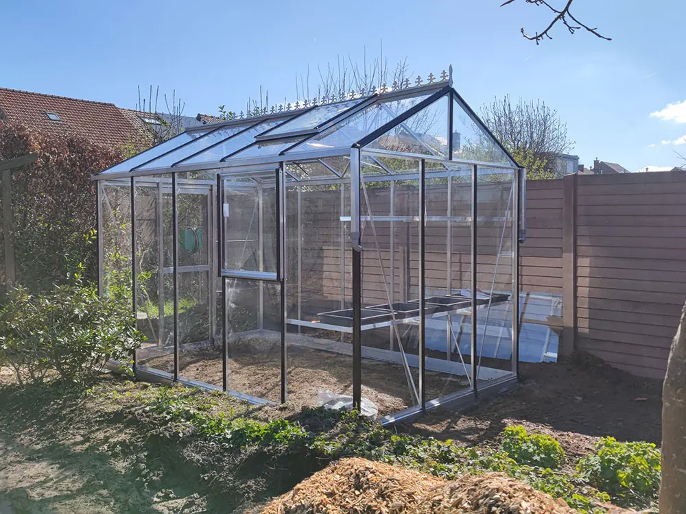 De tuinkas kan worden geplaatst indien je dit wenst. De kostprijs voor montage vind je bij de opties.